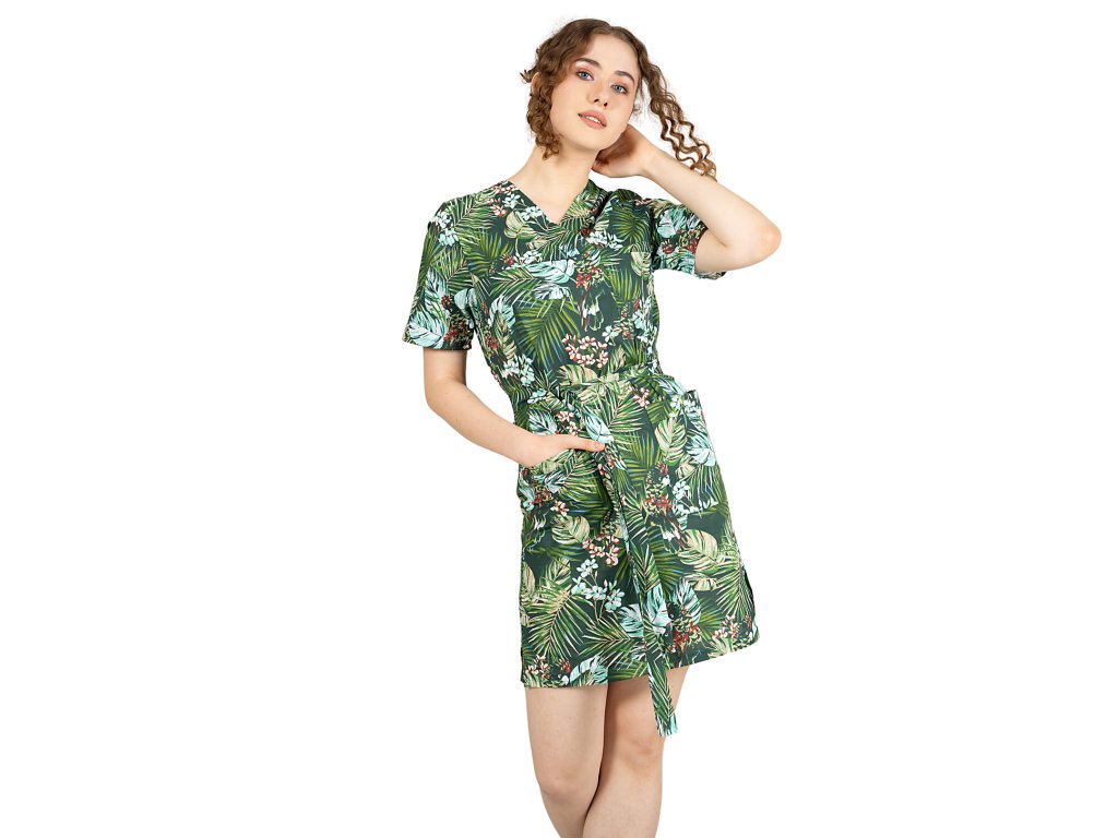 Dámske zdravotné elastické šaty KATIA zelené lístky