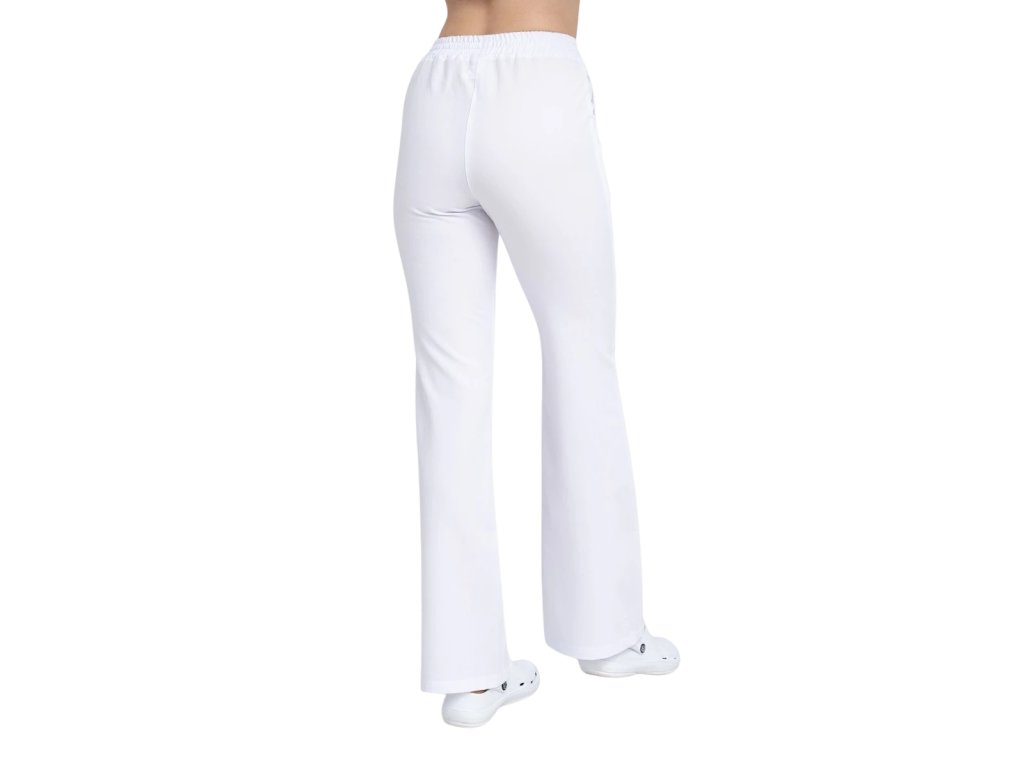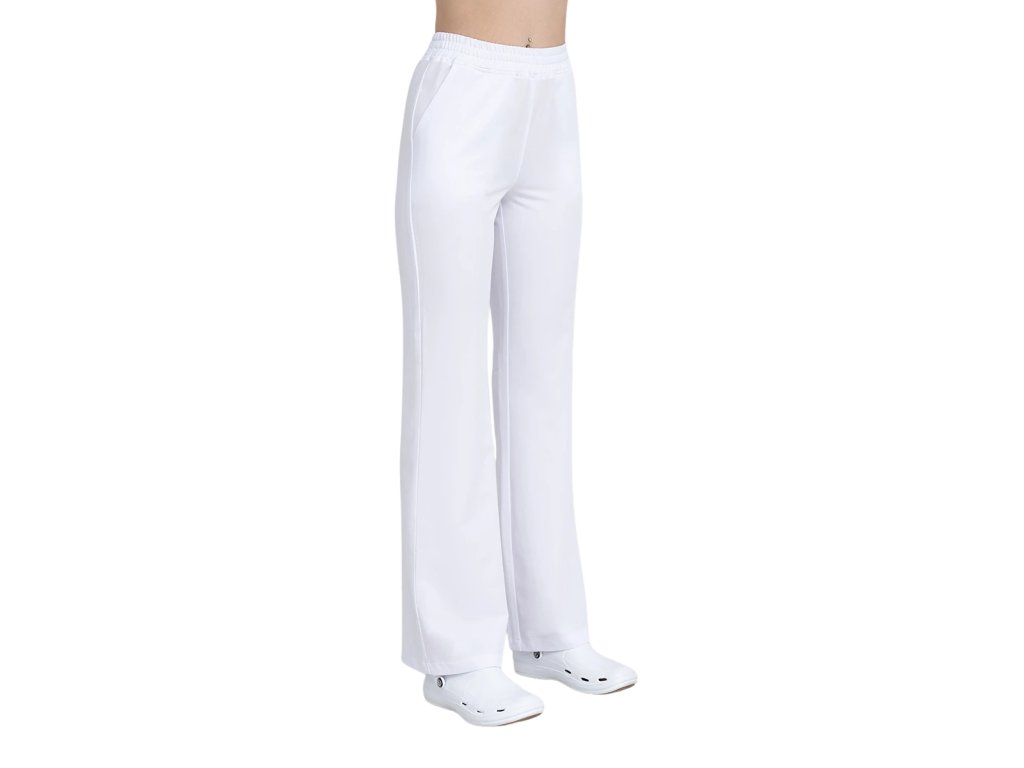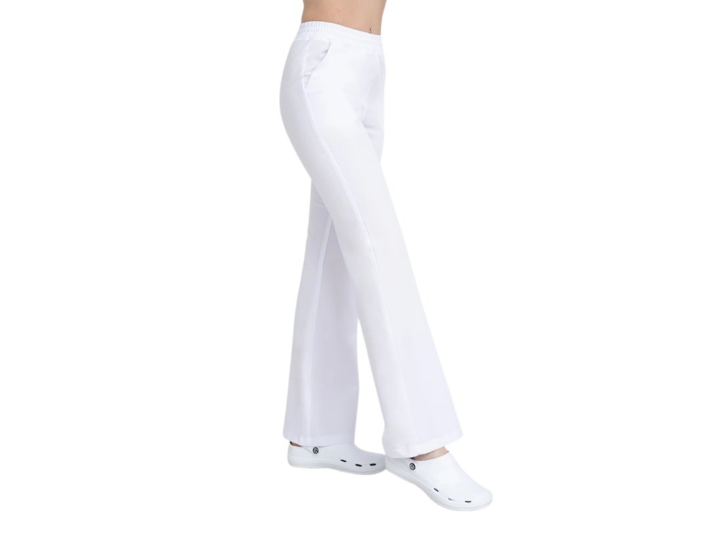 Dámske lekárske nohavice "zvonového" strihu sú určené pre ženy, ktoré chcú spojiť eleganciu, pohodlie a moderný štýl vo svojej každodennej práci. Strih je inšpirovaný klasickým modelom bootcut, ktorý sa jemne prispôsobí v oblasti bokov a stehien, a následne sa rozširuje smerom dole, čo opticky zoštíhľuje a predlžuje postavu.