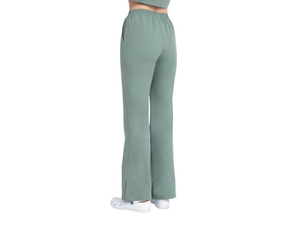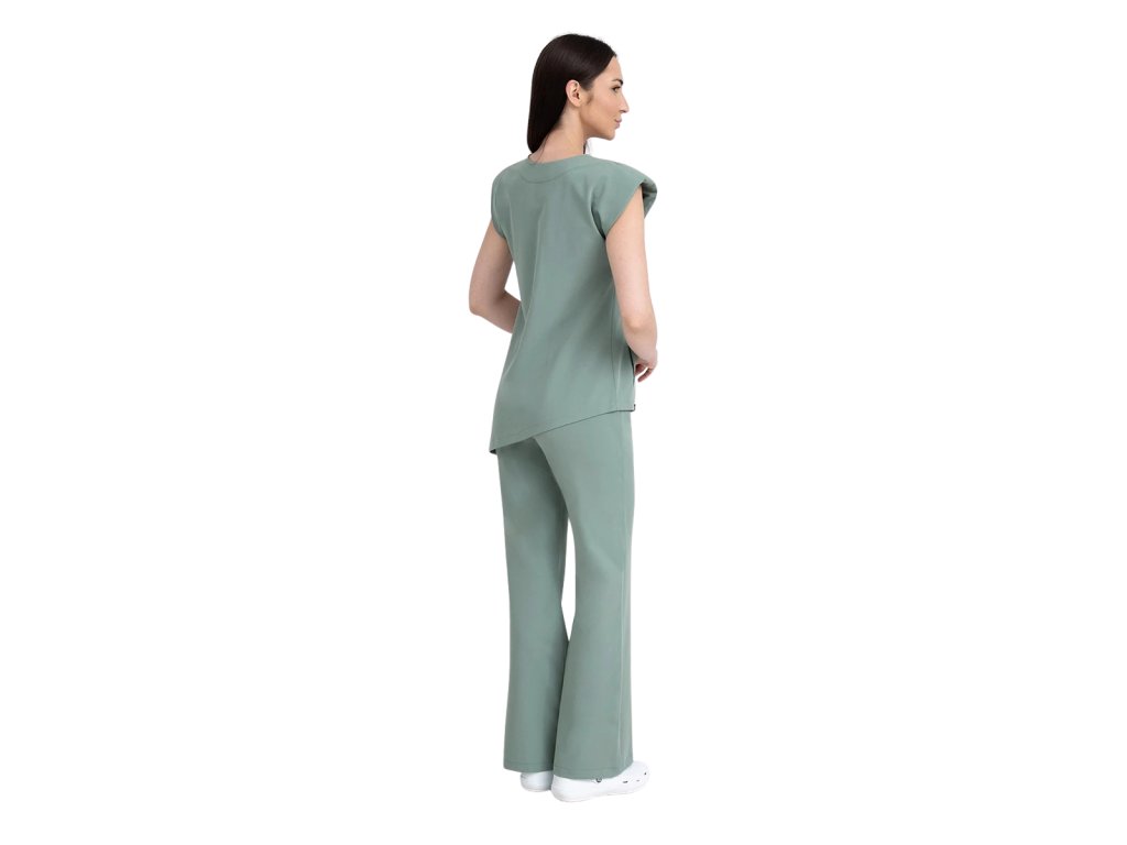 Dámske lekárske nohavice "zvonového" strihu sú určené pre ženy, ktoré chcú spojiť eleganciu, pohodlie a moderný štýl vo svojej každodennej práci. Strih je inšpirovaný klasickým modelom bootcut, ktorý sa jemne prispôsobí v oblasti bokov a stehien, a následne sa rozširuje smerom dole, čo opticky zoštíhľuje a predlžuje postavu.