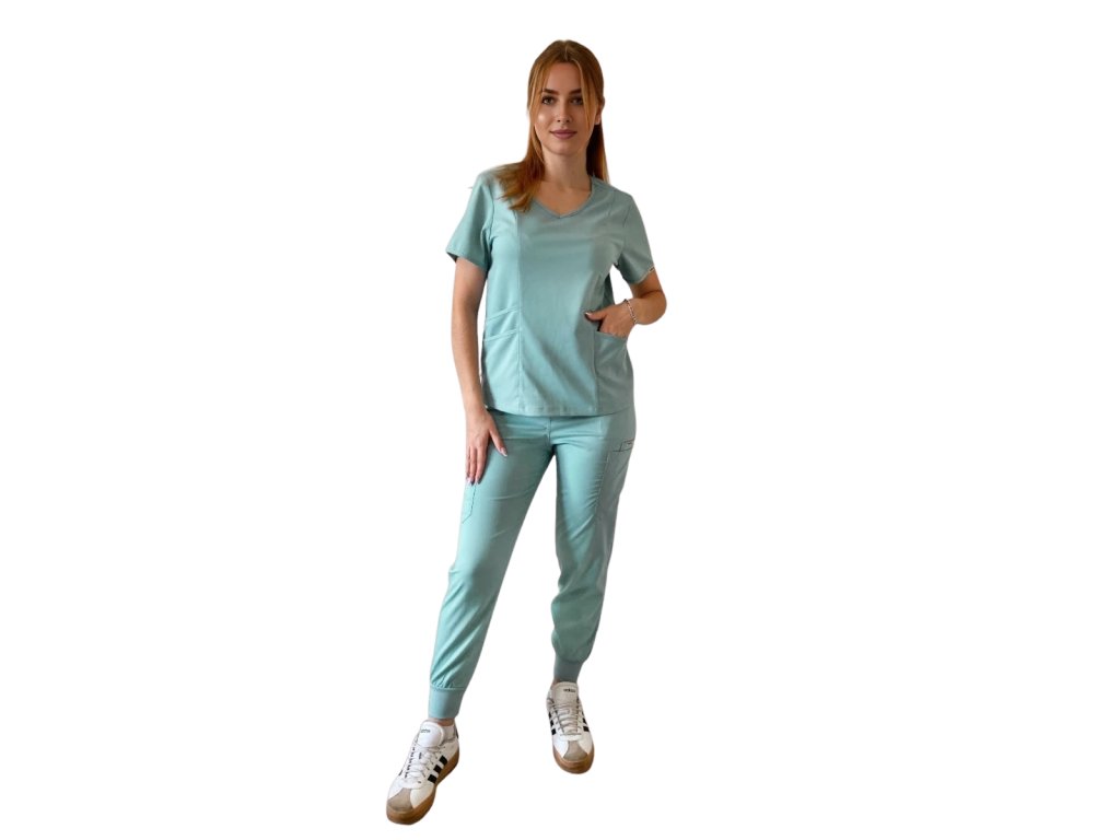Profesionálny dámsky lekársky komplet je ideálnym riešením pre ženy, ktoré hľadajú oblečenie spájajúce eleganciu, pohodlie a funkčnosť. Skladá sa z modernej lekárskej blúzky s jemným strihom a lekárskych nohavíc, ktoré sú navrhnuté tak, aby spĺňali požiadavky práce v zdravotníctve a kozmetickom priemysle. Tento komplet je ideálny pre zdravotné sestry, lekárky, pôrodné asistentky, študentky medicíny, ale aj pre kozmetičky či fyzioterapeutky.