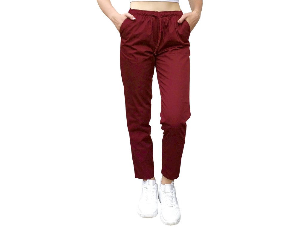 Štýlové dámske lekárske nohavice cigaretového typu s jednoduchým a pohodlným strihom - ideálne pre ženy, ktoré majú radi klasický štýl. Pás je ukončený gumou so sťahovacou šnúrkou, ktorá zaručuje skvelý komfort pri nosení a veľkú možnosť nastavenia veľkosti. Model má navyše dve diskrétne zapustené vrecká vpredu a rovný a zúžený strih , ktorý zodpovedá aktuálnym módnym trendom. Nohavice sú vyrobené z vysoko kvalitnej textílie, vďaka ktorej sa mimoriadne ľahko čistí. Materiál je ľahký, nepriehľadný, stálofarebný a ľahko sa žehlí.