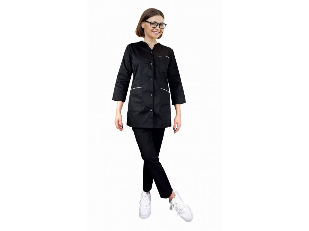 Je kombináciou blúzky so zapínaním na patentky ukončenej lemovaním.